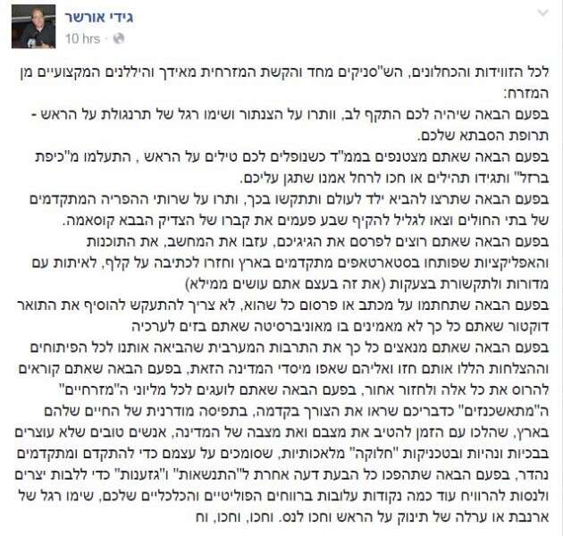 הפוסט של גידי אורשר // צילום: מתוך פייסבוק