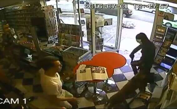 בעל החנות הבחין בגנב עוד שהיה בחוץ, ונסוג לתוך החנות. השודד דלק בעקבותיו באקדל שלוף, כאשר לפי תנועות הגוף שלו ניתן ללמוד כי הוא דורש את הכסף המזומן שיש בקופה.