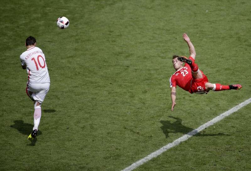 הגול: ג'רדאן שאקירי. 25 ביוני הוא תאריך קדוש בהיסטוריה של אליפויות אירופה. באותו יום ב־1988, מרקו ואן באסטן כבש את אחד השערים הגדולים בתולדות הטורניר - וולה בלתי נשכח לרשת של בריה"מ במשחק הגמר. 28 שנים אחר כך, על היום, ג'רדאן שאקירי השוויצרי כבש שער נוסף שייזכר לדורות. בדקה ה־82 של שמינית הגמר מול פולין, ובפיגור 0:1, קשרה של סטוק סיטי התעופף למספרת מרהיבה מקו ה־16 ושלח כדור שקיפץ על הדשא, הכניע את פביאנסקי, ליטף את הקורה ומשם לרשת. השער הזה שלח את המשחק לבעיטות הכרעה מהנקודה הלבנה, שם החטאה אחת של גרניט ג'אקה שלחה את שווייץ הביתה. שאקירי אחראי גם לציטוט הטורניר, כשהתייחס לחולצות הקרועות של נבחרת שווייץ ואמר: "אני מקווה שפומה לא מייצרת קונדומים", וגם לציוץ הטורניר, של הזמרת שאקירה: "פעם ראשונה שזוג כובש ביורו: פיקה ושאקירי".