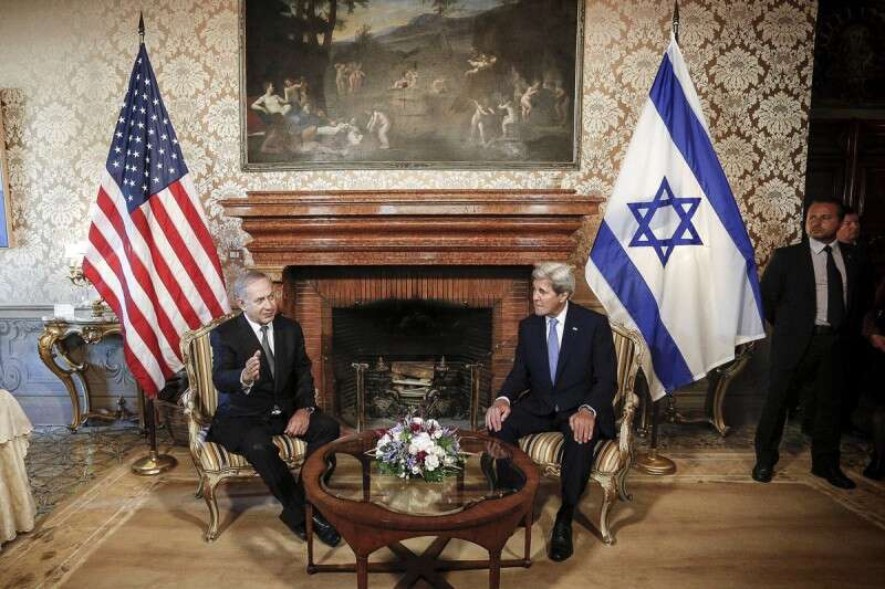 פורטמן: "לא ייתכן שכספי משלם המיסים האמריקני ישמשו כנגד מנהיגה של ישראל". בתמונה: נתניהו וקרי // צילום: רויטרס