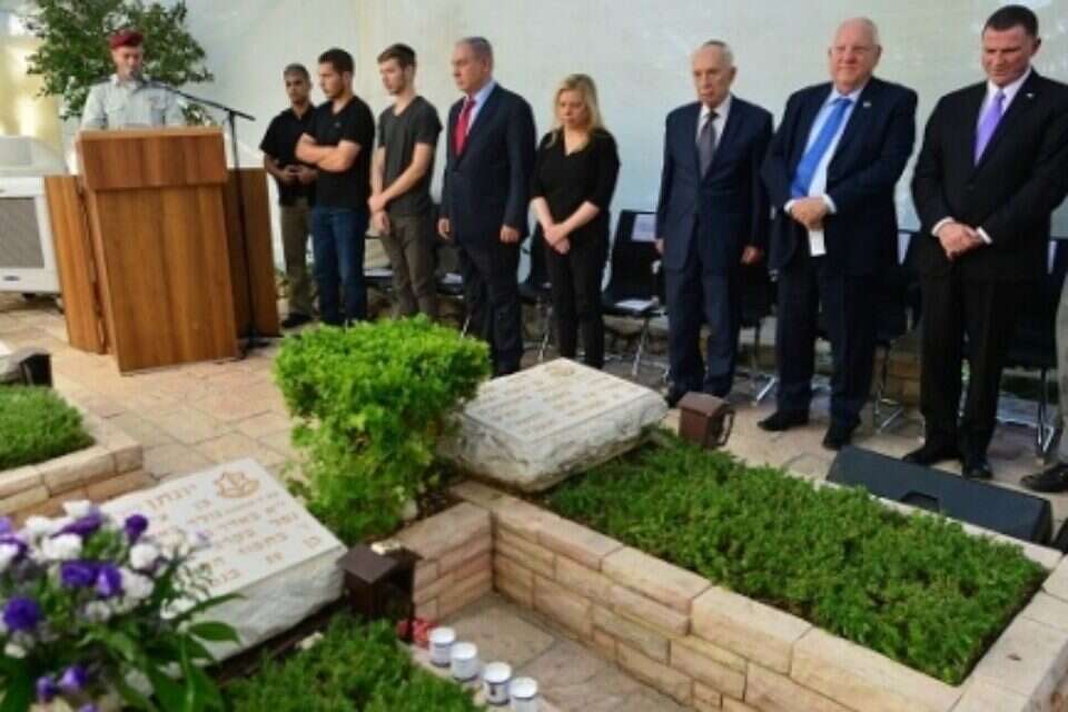 Prime Minister Benjamin Netanyahu, his wife Sara and their sons Yair and Avner attended a memorial ceremony at the Mount Herzl military cemetery in Jerusalem on Tuesday for the prime minister's older brother Yonatan Netanyahu, the Sayeret Matkal commander who was killed 40 years ago during the July 1976 Entebbe hostage rescue operation. Other attendees included the prime minister's younger brother Iddo Netanyahu, President Reuven Rivlin, former President Shimon Peres (defense minister at the time of the Entebbe operation), Knesset Speaker Yuli Edelstein, and a number of the hostages who were rescued at Entebbe. Gilad Schalit, the IDF soldier who was held captive by Hamas for more than five years before being freed in a prisoner swap in October 2011, was also in attendance. Shlomi Reisman, a former Sayeret Matkal commando who took part in the Entebbe operation, said, "The heart of the operation, eliminating the terrorists and freeing the hostages, was entrusted to the unit [the Sayeret Matkal], and it was Yoni who led it successfully on this impossible mission." Benny Davidson, a representative of the freed hostages, said, "Yoni was killed for us. Yoni fell, and in falling, gave us life. ... May your memory be eternally blessed."