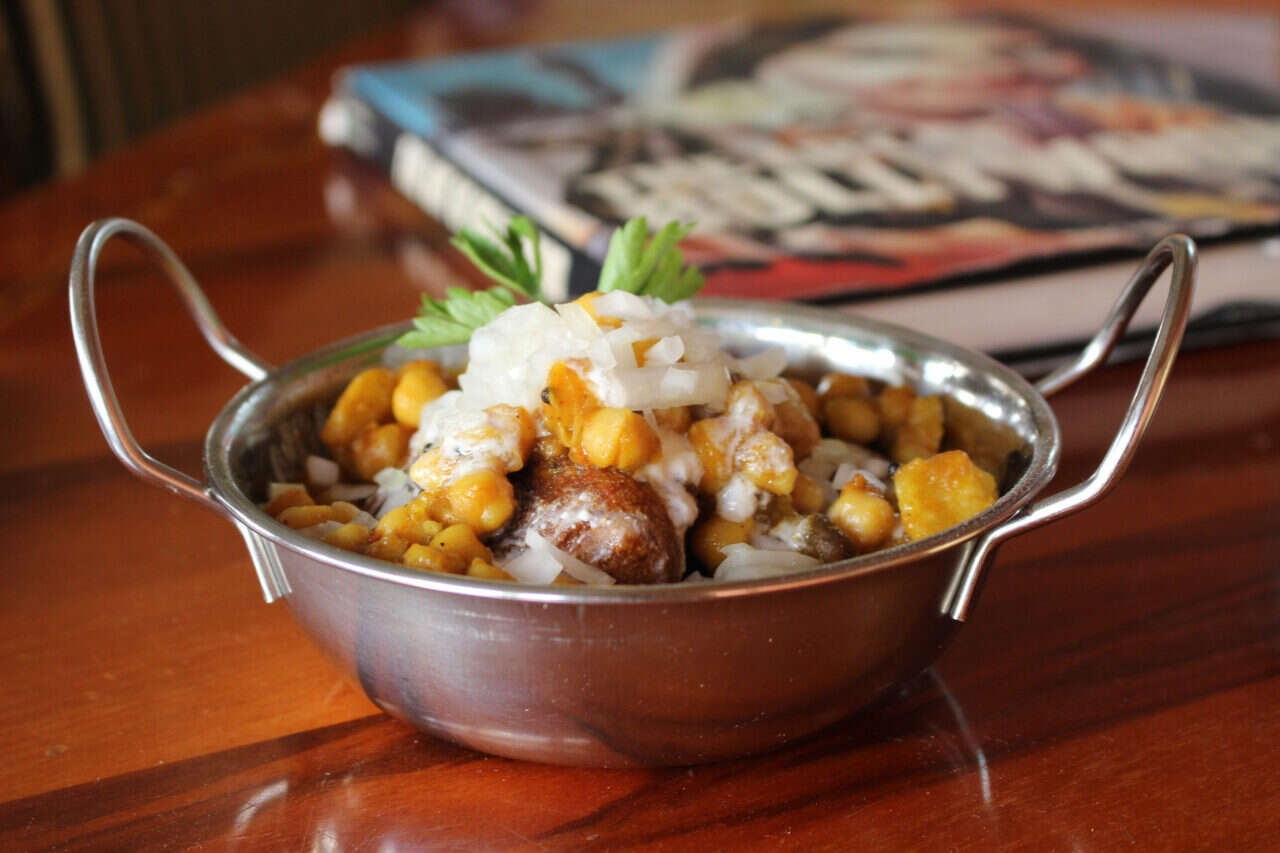 בין רגע הפך שולחננו משולחן עץ גנרי משעמם לחגיגה צבעונית של קערות וקעריות, עיגולים-עיגולים של אושר. זה התחיל ממנה של בטטה ואדה (25 ש"ח), כופתאות תפוחי אדמה רכות עטופות קמח חומוס ומטוגנות בשמן עמוק, בגרסת ג'יוטי מגישים אותן גדולות במיוחד ועבות, מוקפות בתבשיל גרגירי חומוס ובצל נא קצוץ. מסוג המנות הראשונות שממלאות אותך עוד לפני העיקרית. אחר כך טעמנו מהסמוסה של ג'יוטי (25 ש"ח), כיסונים ממולאים בתפוח אדמה ואפונה.
