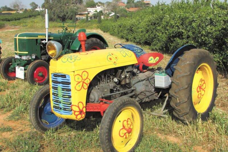 בטרקטורים נמצא גם הטרקטור האמיתי של הדוד אהרון, המקושט בפרחים, מספר הילדים של מאיר שלו "הטרקטור בארגז החול".