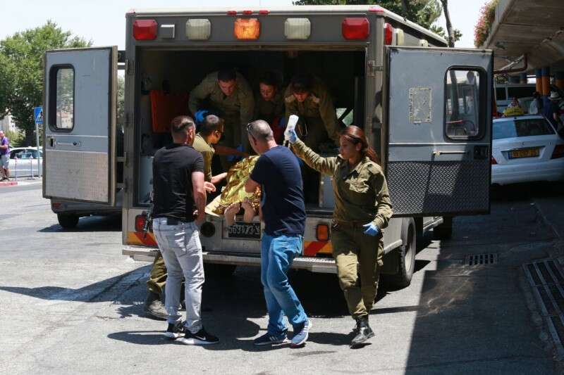 הגעת המחבל לבית החולים שערי צדק // צילום: דוד מיכאל כהן/TPS