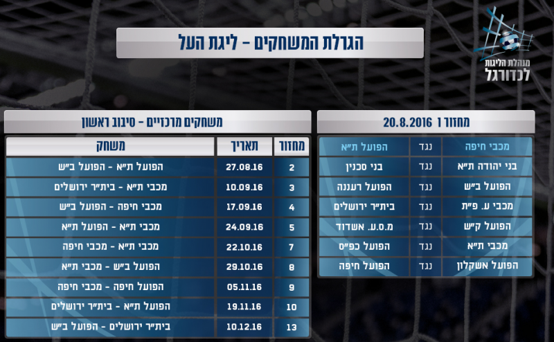 בעוד כחודש תפתח עונת 2016/17 בליגת העל, והיום נערכה הגרלת המשחקים באצטדיון בנתניה. הליגה תחל ביום שבת ה-20 באוגוסט ומשחקי גביע הטוטו יחלו ב-30 ביולי. כמו כן, משחק אלוף האלופים יתקיים ב-11 באוגוסט בו ייפגשו האלופה הפועל ב"ש ומחזיקת הגביע מכבי חיפה והוא ייערך באצטדיון בנתניה.