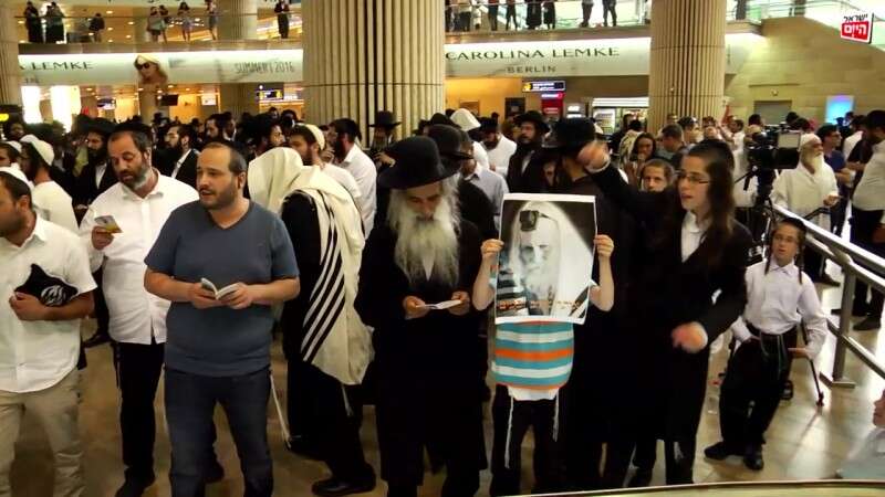 חסידיו של הרב ברלנד הבוקר בנתב"ג \ צילום: משה בן שמחון