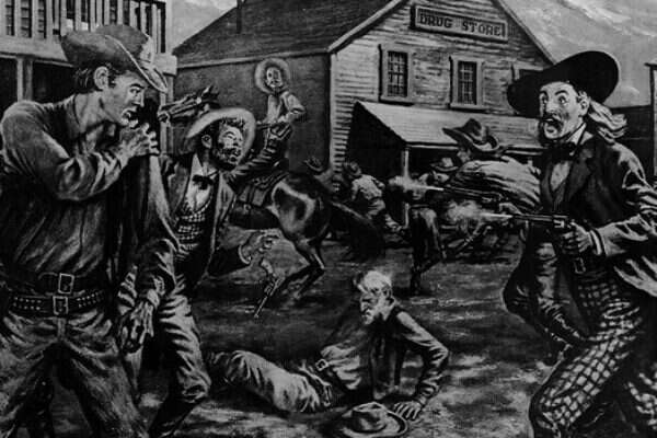 ב־21 ביולי 1865 התרחש דו־הקרב המתועד הראשון בהיסטוריה של המערב הפרוע, כש"ביל היקוק הפראי" (באיור, מימין), מהדמויות המפורסמות במערב, התייצב מול דיוויס טוט (הבן), שעימו היה מסוכסך בעקבות משחקי קלפים והלוואות. הכדור של היקוק פגע בטוט והרגו.