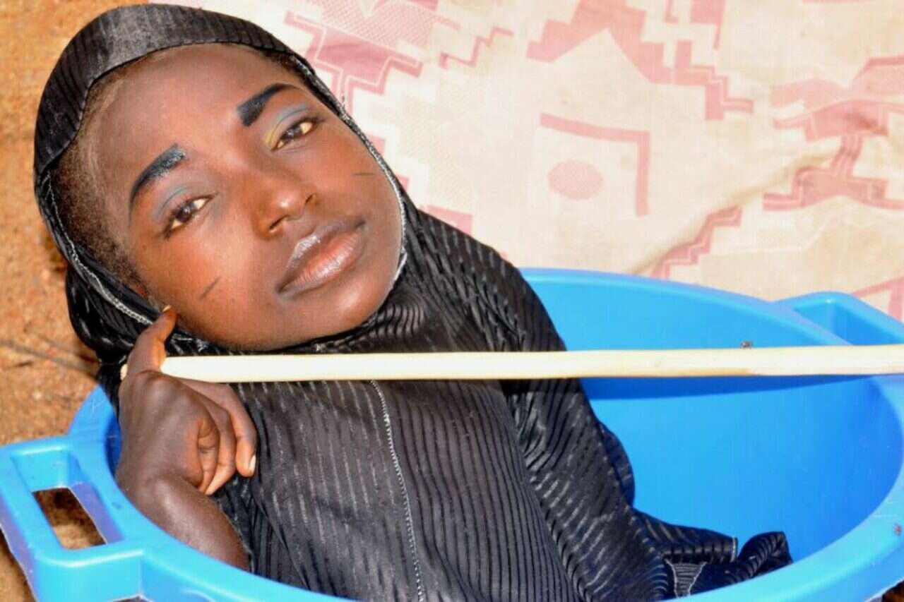 רחמה חרונה בת ה-19 מניגריה סובלת ממחלה נדירה – איבריה קטנים וגודלה הוא כשל תינוק. מגיל חצי שנה היא סובלת מהמחלה, ומאז היא מעבירה את רוב זמנה בתוך קערת פלסטיק שבני משפחתה נושאים ממקום למקום.