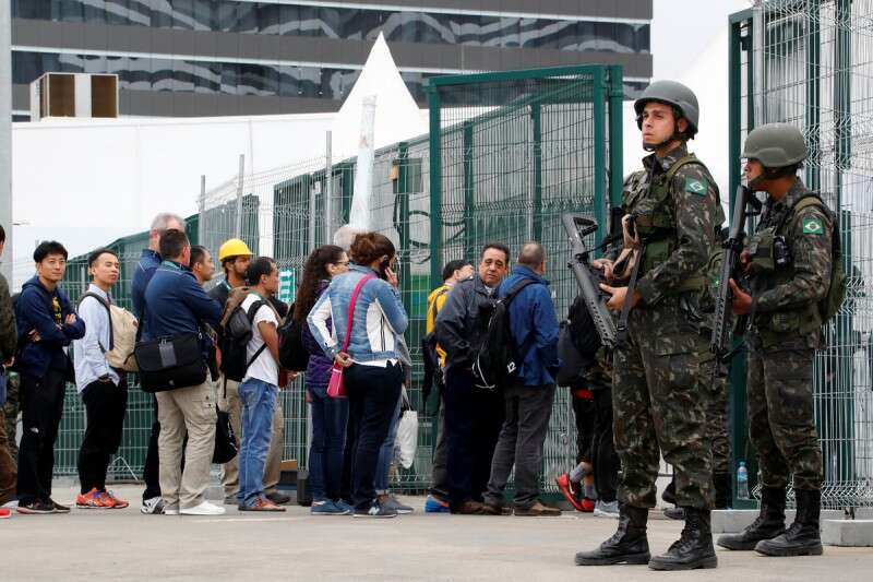 תור ארוך ממתין לבידוק ביטחוני מחוץ לכפר האולימפי בריו, אתמול // צילום: רויטרס