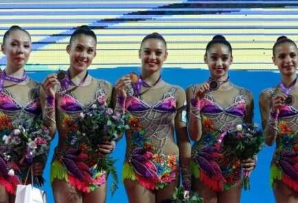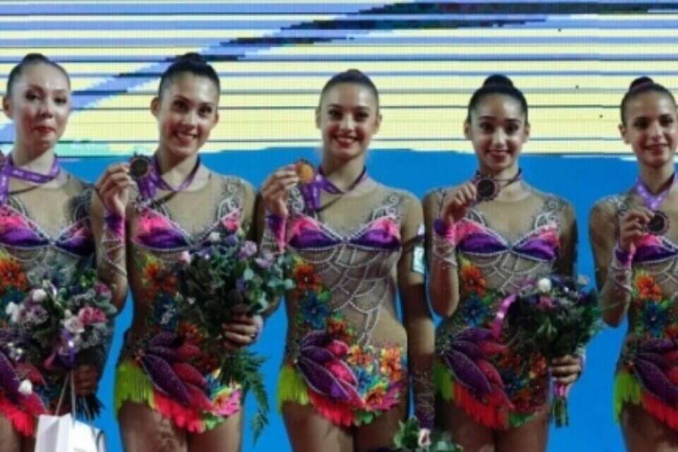 Israel's national rhythmic gymnastics team won several medals, including gold, in the International Federation of Gymnastics World Cup finals, held over the weekend in Baku, Azerbaijan. This was the team's last international competition before flying to the Rio Olympic Games. Team members Yuval Filo, Alona Koshevatskiy, Ekaterina Levina, Karina Lykhvar, and Ida Mayrin, won the gold medal in the ribbon exercise Sunday, while Russia took the silver medal and Spain won the bronze. Competing in the clubs and hoops finals on Sunday, the Israeli team finished fourth. The team won the silver medal on Saturday, this time in the all-around competition. The win followed a bronze medal won by Neta Rivkin finished third in the ball exercise. Rivkin, perhaps the most prominent rhythmic gymnast in the team, is slated to represent Israel in the rhythmic gymnastics individual competition in Rio -- her third Olympic Games.