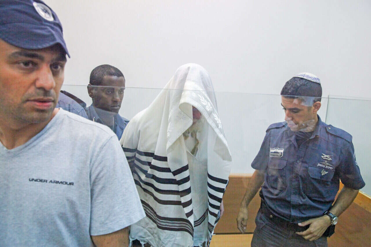 הרב ברלנד (מכוסה) בבית המשפט לפני ההחלטה לשחררו למעצר בית \ צילום: יהושוע יוסף // הרב ברלנד (מכוסה) בבית המשפט לפני ההחלטה לשחררו למעצר בית \ צילום: יהושוע יוסף