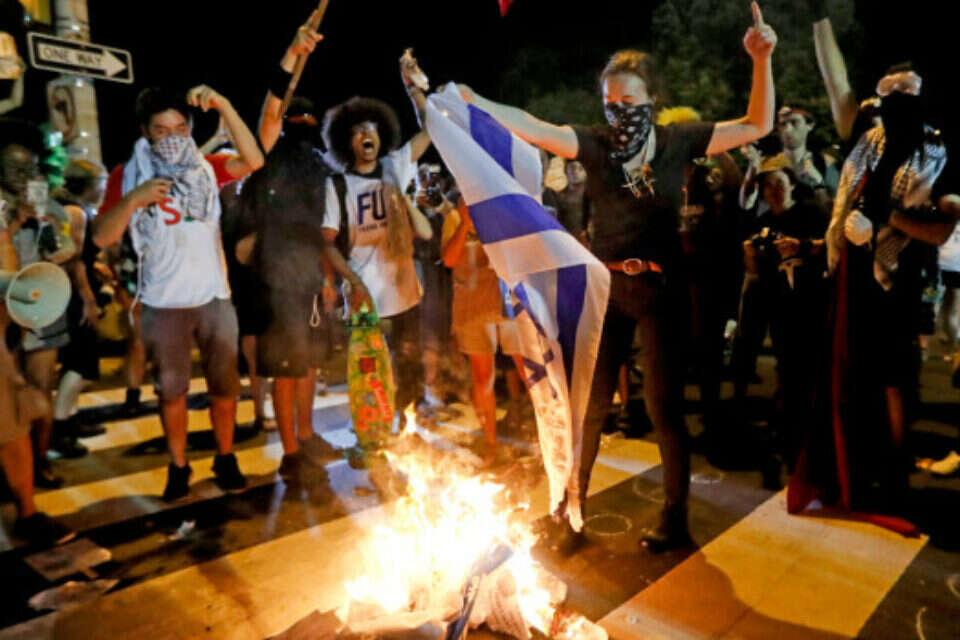 תקרית אנטי-ישראלית בוועידה הדמוקרטית בפילדלפיה, אמש (שלישי). מוחים אנטי ישראלים הציתו את דגל ישראל תוך שהם שרים "תחי האינתיפאדה", מחוץ לאולם בו התקיימה הוועידה, כשבאותה העת נאמו בכירי המפלגה. בסרטון שתיעד את האירוע המכוער נראית אישה, כשעל ראשה בנדנה שחורה, מחזיקה דגל ישראלי ומעלה אותו באש. בהמשך, שרפו המוחים, שחלקן זוהו כפעילי שמאל רדיקלי גם דגלי ארה"ב, וחלק מהנוכחים נופפו בדגלי אש"ף.
