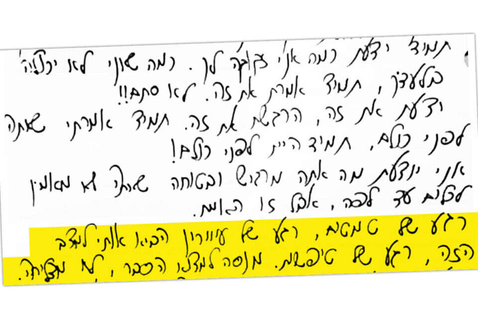 "רגע של טמטום ושל עיוורון הביא אותי למצב הזה. רגע של טיפשות. אני מנסה למצוא הסבר ולא מצליחה", כתבה המורה לבעלה.