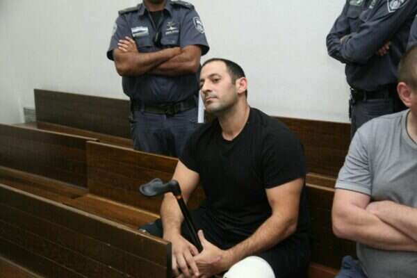 נעצר בחשד לאיומים, כליאת שווא ומעשה מגוני. בן כהן ומאבטחו סלבה נוביקוב (בחולצה האפורה, מימינו) // צילום: גדעון מרקוביץ'