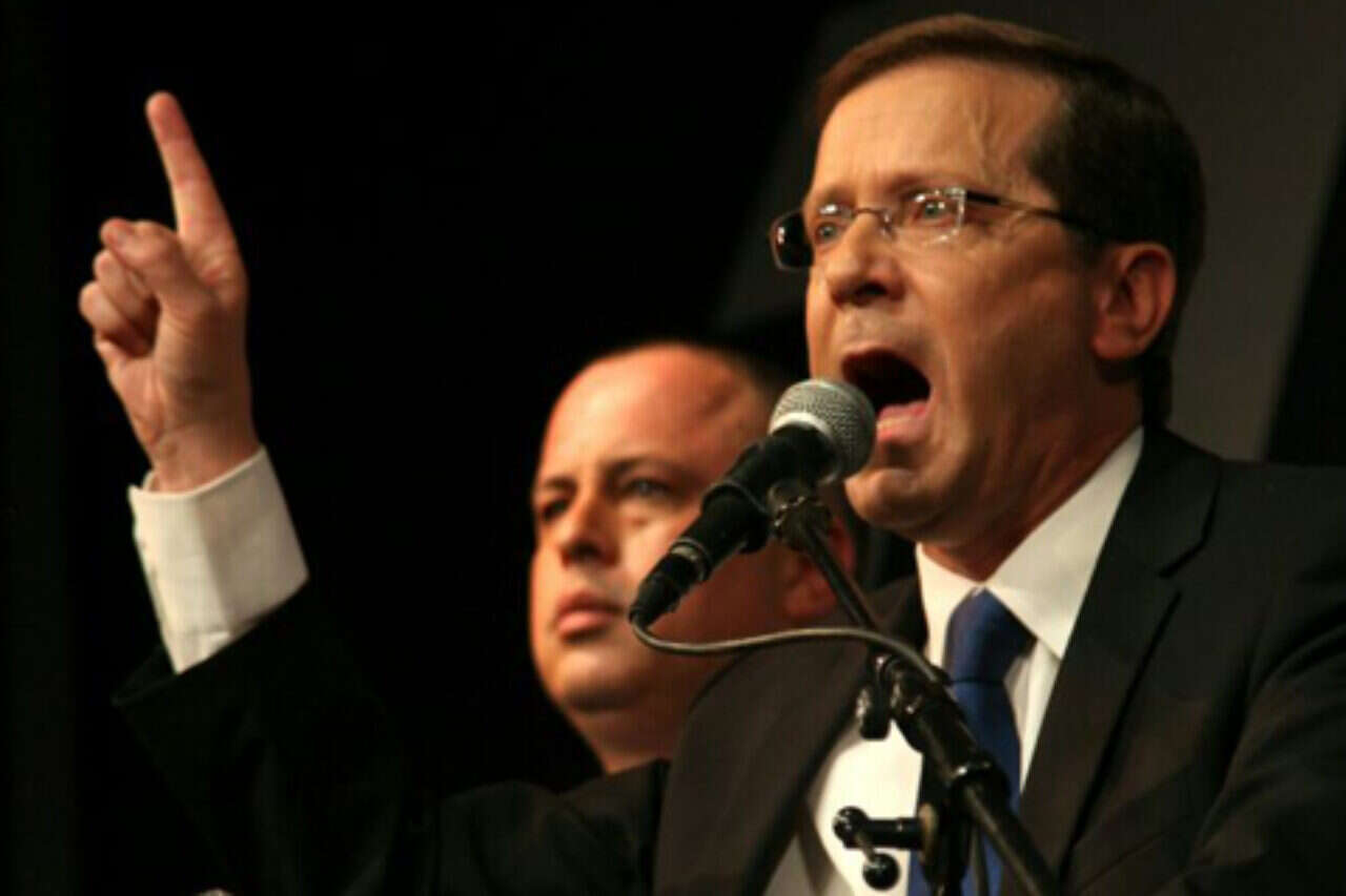 מוחים כנגד הרצוג, ולא מאפשרים לו להשלים את דבריו // צילום: גדעון מרקוביץ'