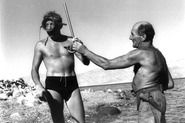 בקיץ 1956 הגיע לביקור בעיר הנופש הדרומית של המדינה הצעירה השחקן והקומיקאי דני קיי (בתמונה, משמאל). הכוכב ההוליוודי, שבאותה שנה הוציא את סרטו "ליצן החצר", לא החמיץ את חוויית הצלילה בחופי אילת.