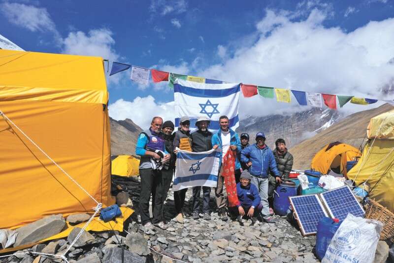 חוגגים את יום העצמאות הישראלי. מימיני המדריכים המקומיים, משמאלי חלק מהמטפסים