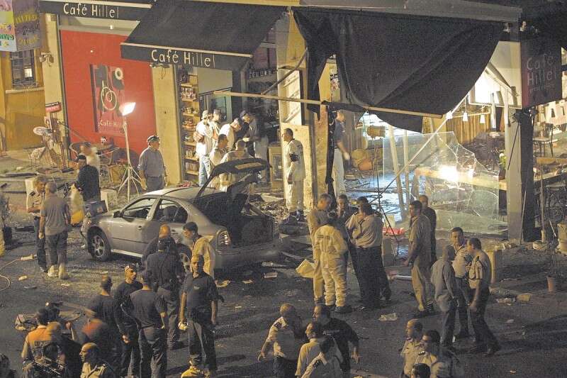 משפחות הקורבנות לא מוכנות לשתוק. זירת הפיגוע בקפה הלל ב־2003 // צילום: GettyImages