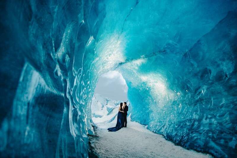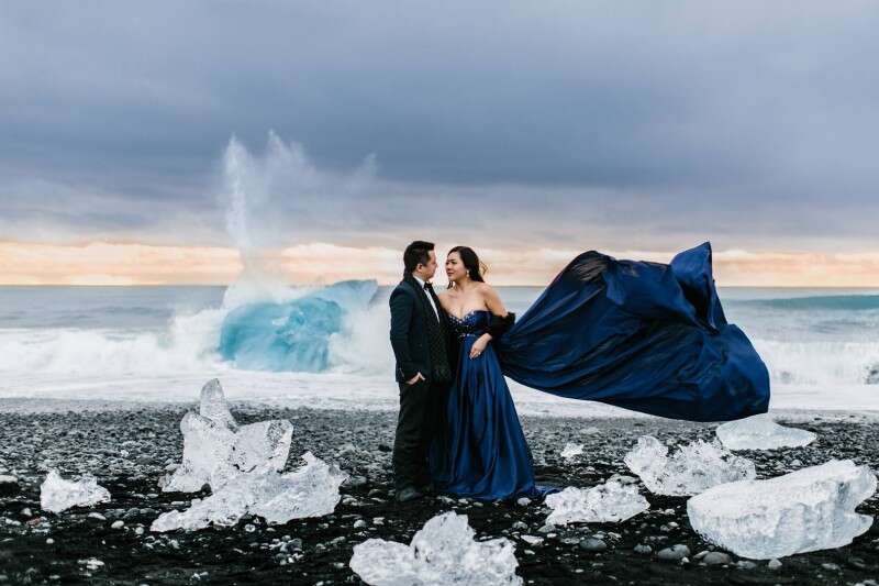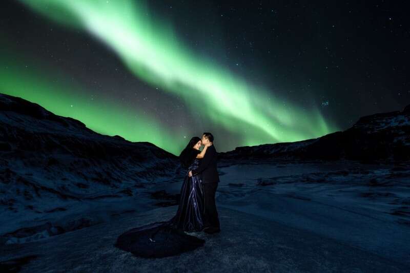 במשך שבוע שלם של שהות באיסלנד הם ערכו צילומי חתונה מדהימים ואינטימיים כשברקע סלעים וולקניים, גייזרים וקרחונים.