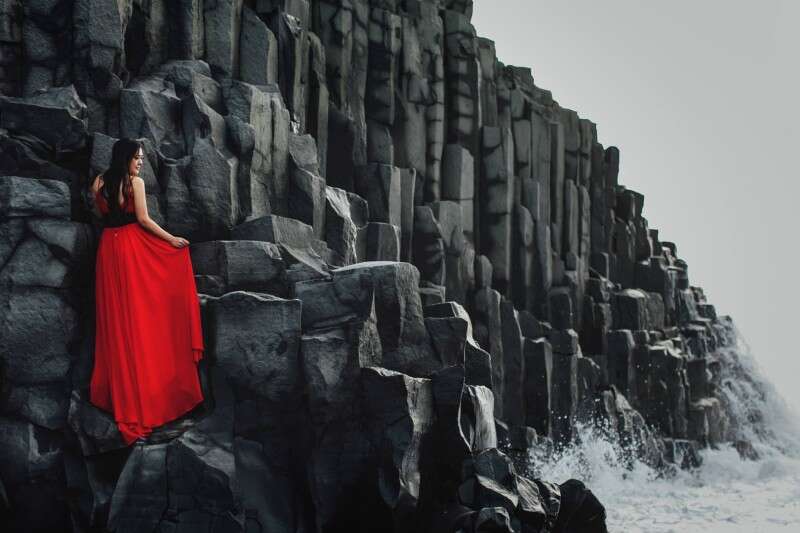 כלה באדום על רקע סלעים חדים בשחור // צילום: מתוך דף הפייסבוק של "Life Studio"