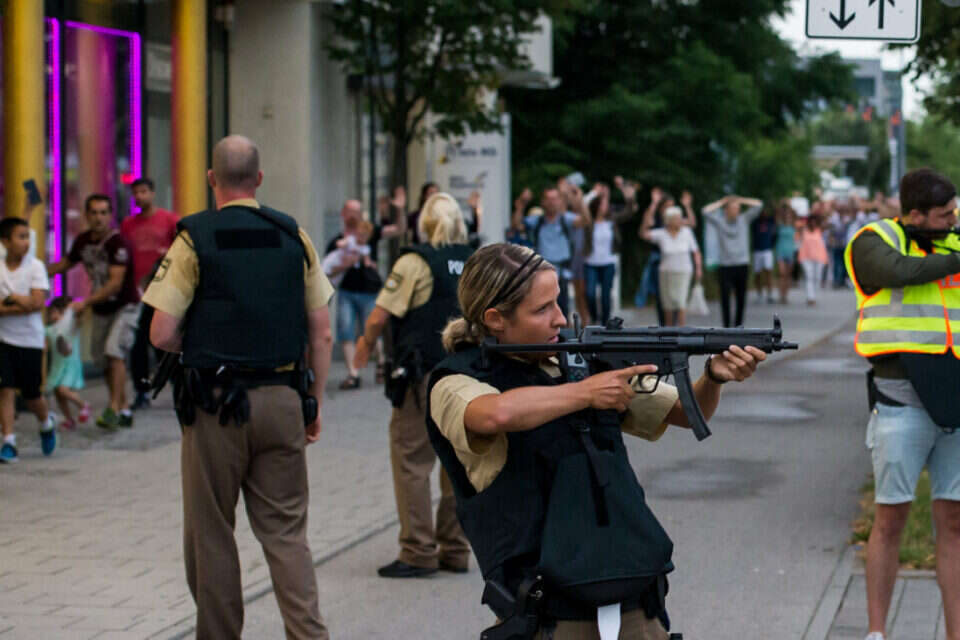 שוטרים לאחר אירוע הירי במינכן, אזרחים יתבקשו לאגור מזון // צילום: getty images // שוטרים לאחר אירוע הירי במינכן, אזרחים יתבקשו לאגור מזון // צילום: getty images