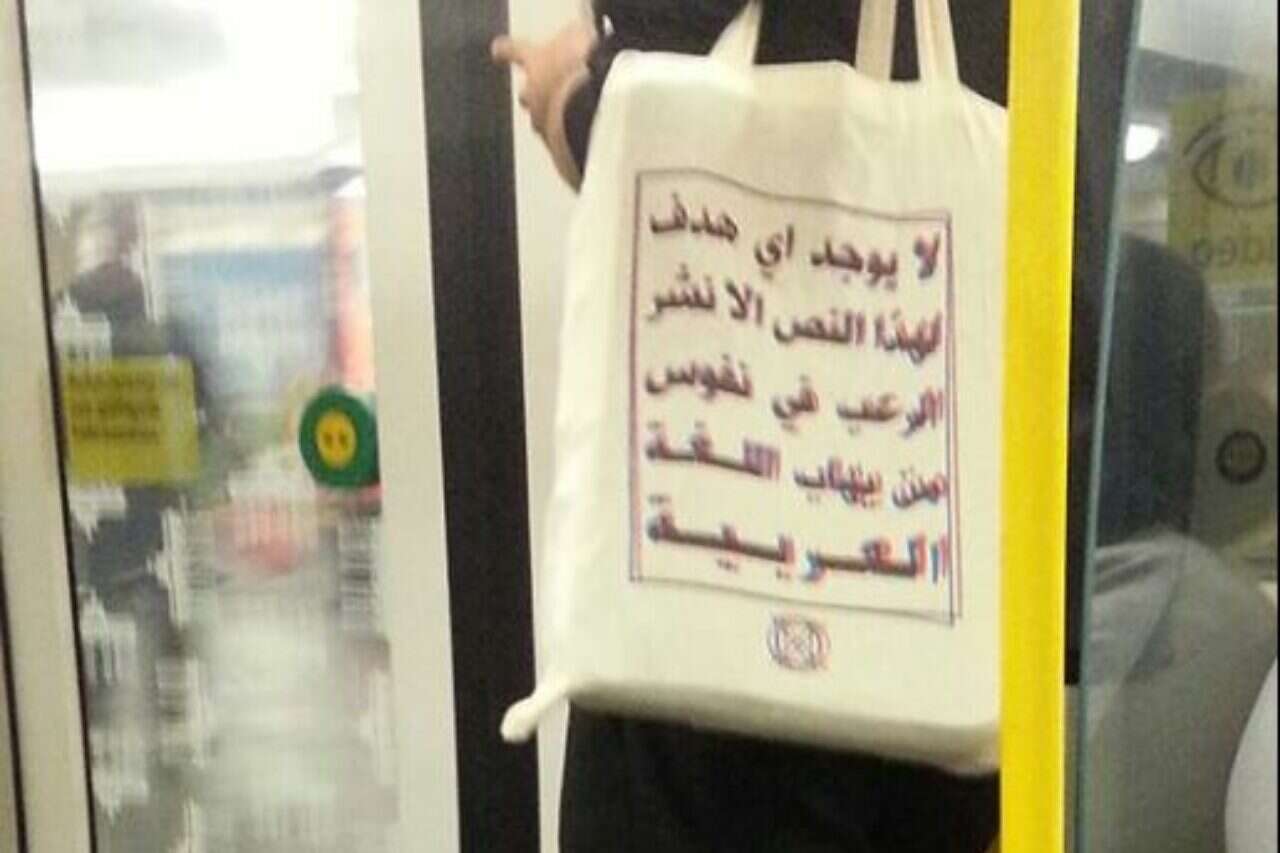 העיתונאי נאדר אל-סראס, ששהה בשבוע שעבר ברכבת בעיר ברלין, הבחין במישהו שנושא תיק עם כיתוב מעניין בערבית. "לטקסט הזה אין שום מטרה אחרת, מלבד להפחיד את אלה שמפחדים מן השפה הערבית", כך נכתב על גבי התיק.