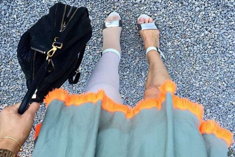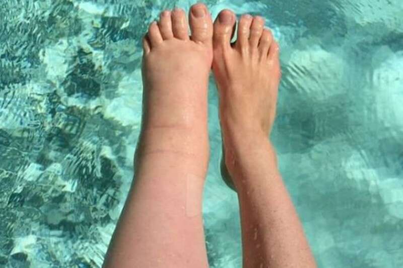 שרה בולר עם הלימפאדמה שגורמת לרגל שלה להתנפח // צילום: מתוך אינסטגרם