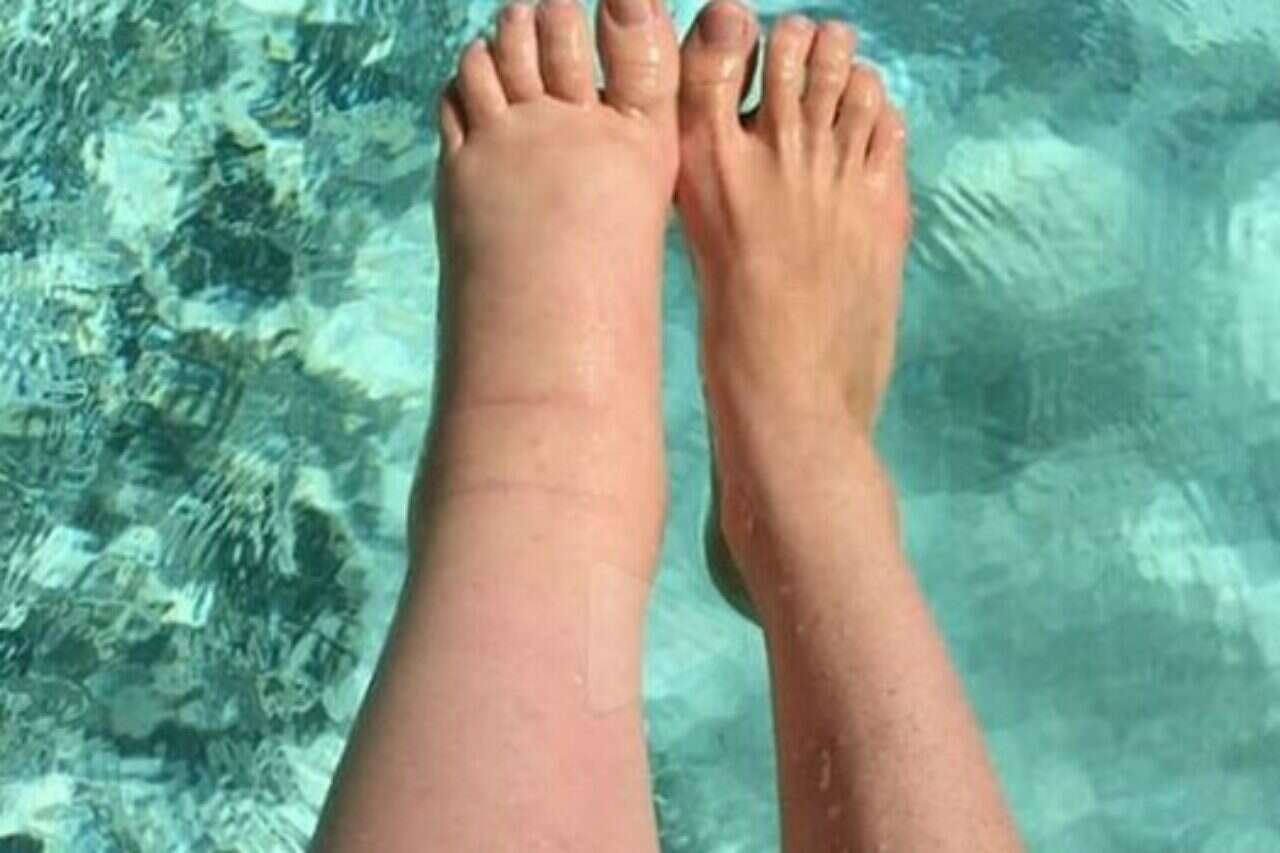 שרה בולר עם הלימפאדמה שגורמת לרגל שלה להתנפח // צילום: מתוך אינסטגרם