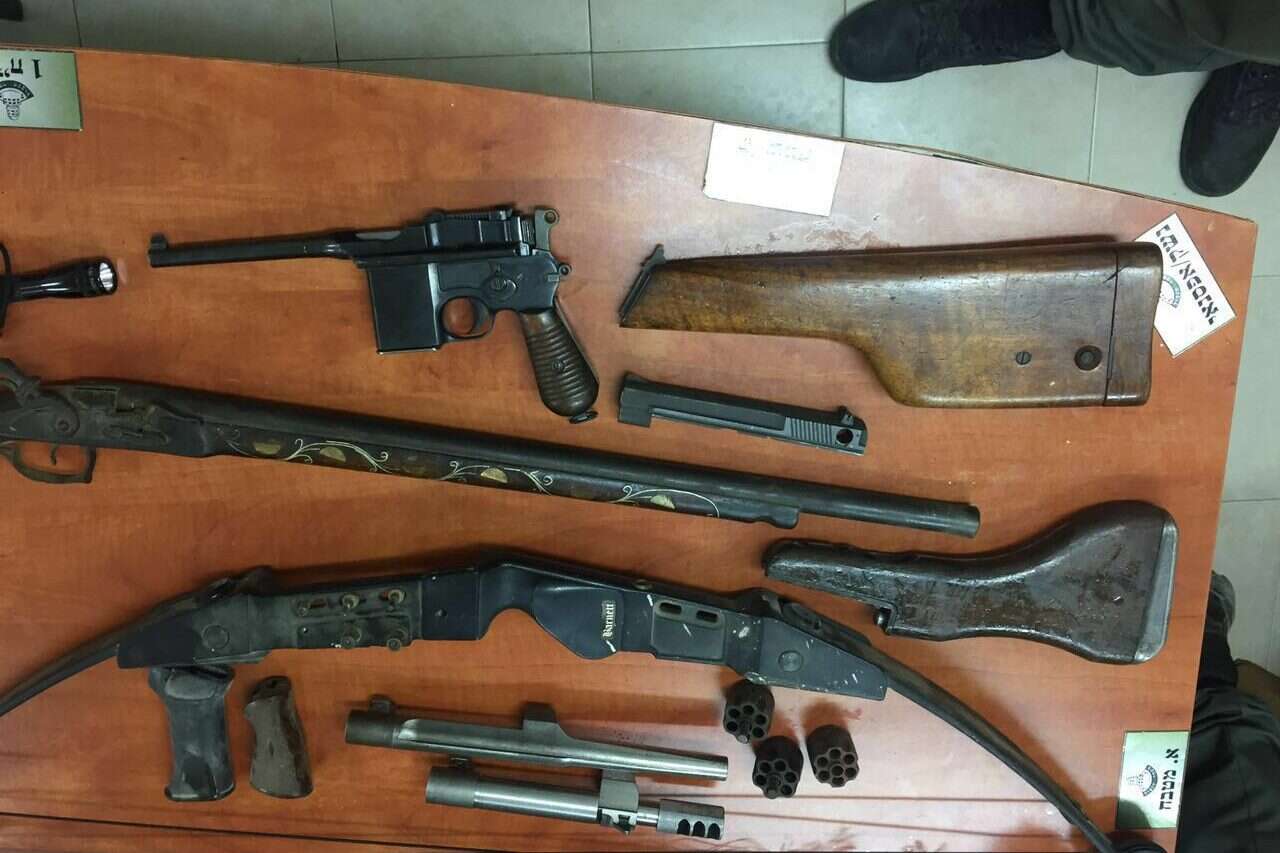 האמל"ח שנתפס. אקדחים ורובי ציד // צילום: דוברות המשטרה