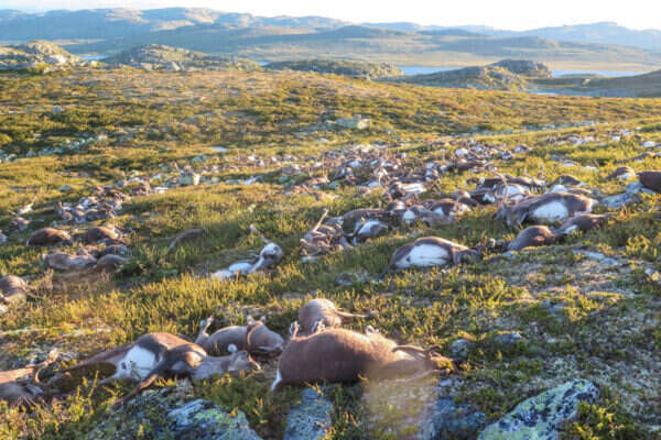 "אסון טבע חריג בגודלו", כך הגדירו נציגים של רשויות הטבע בנורבגיה את מותם של 323 איילים לאחר שנפגעו ממכת ברק עוצמתית במרכז המדינה הסקנדינבית, ברמת הר הרדאנגרבידה.