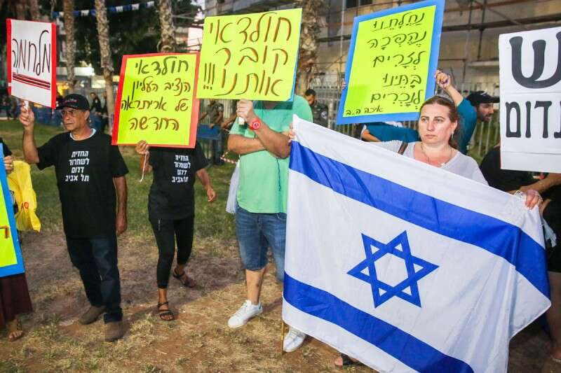 "רוצים לבעוט אותנו מהשכונה". המפגינים הערב בתל אביב // צילום: יהושע יוסף