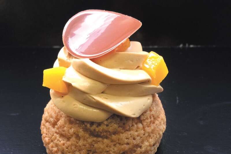 פחזנית מצופה בקרמבל (בצק פריך דק), שאותה ממלאים בקרם מנגו ובקציפת קרמל. שימו לב: את קציפת הקרמל יש להכין יום מראש, משום שהיא דורשת קירור של 24 שעות.