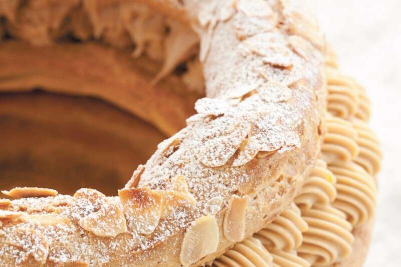 מרכיבים את המנה: חותכים את טבעת הבצק האפויה לרוחבה. מזלפים על החצי התחתון את הקרם בצנתר משונן ומניחים מעליו את החצי העליון. בוזקים מעט אבקת סוכר ומגישים.