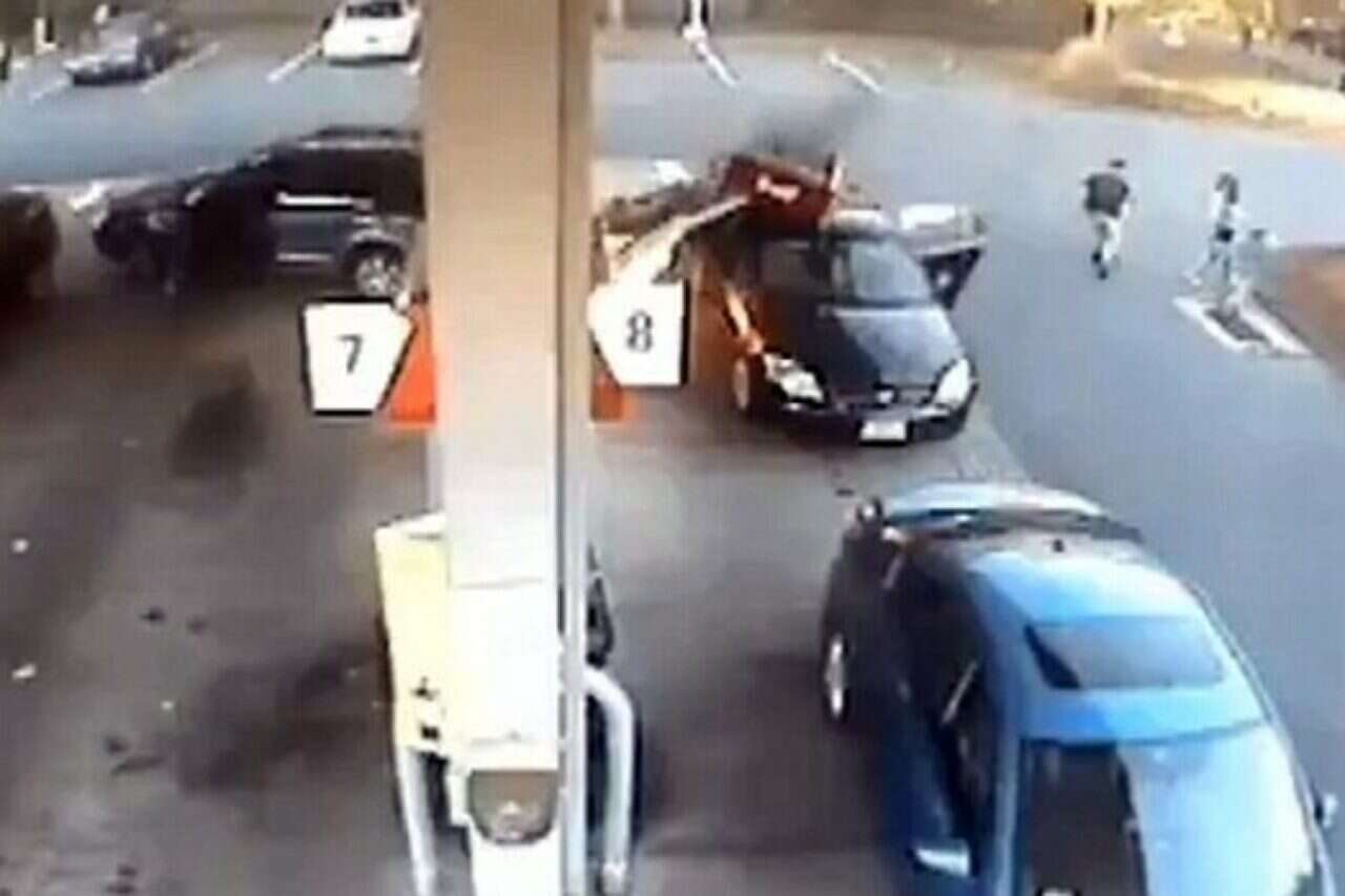 בסרטון ניתן לראות כיצד האישה, שעמדה בחוץ ותידלקה את רכבה, נהדפה לאחור מיד אחרי פגיעת הרכב ונפילת המשאבה. אולם היא התעשתה מהר מאוד ורצה אל הילדים שהיו ברכב, שלפה את שניהם והרחיקה אותם מהאזור. שניות ספורות לאחר מכן, התחילה המשאבה להעלות עשן שחור, והאש אחזה ברכב. בהמשך, שני הרכבים, הפוגע והנפגע, נשרפו כליל.