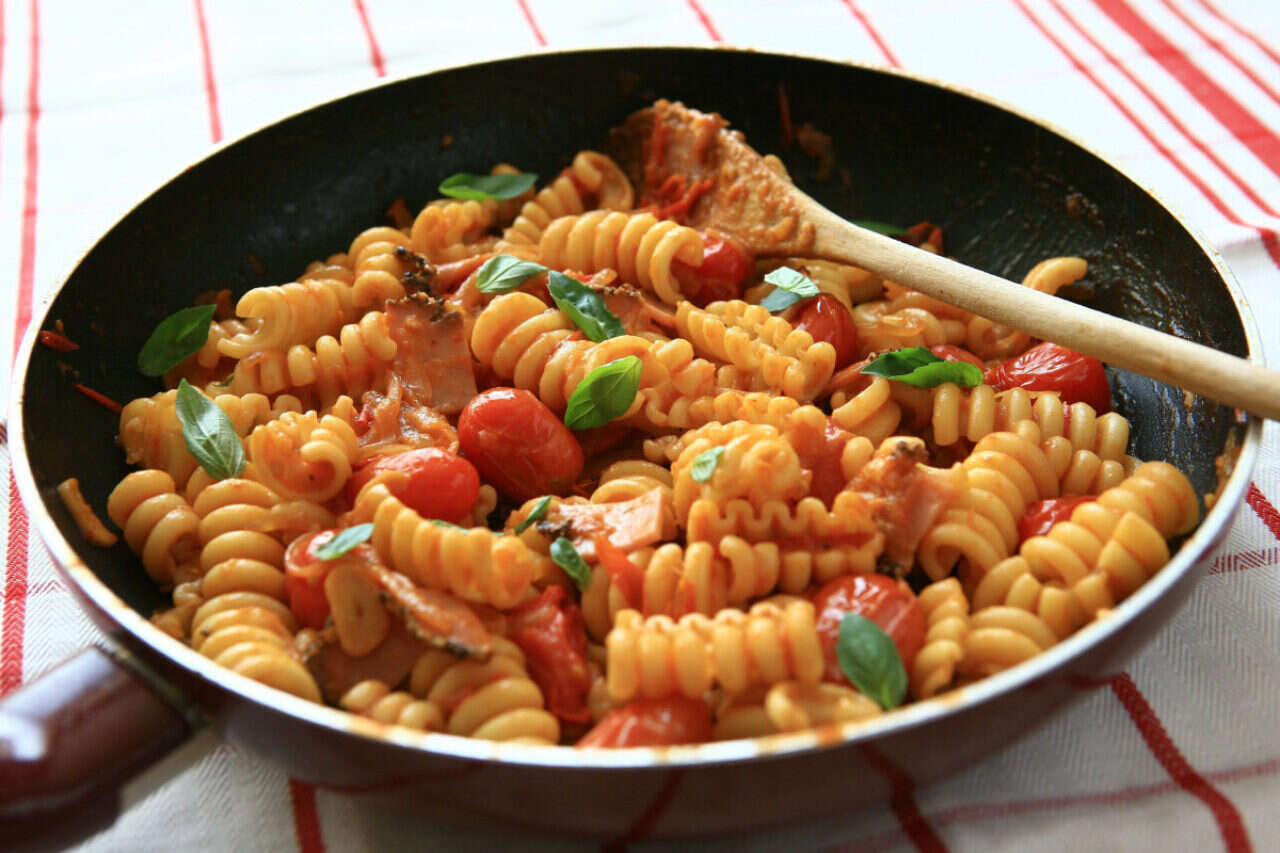 פסטה ברוטב עגבניות צלויות ופסטרמה מפולפלת