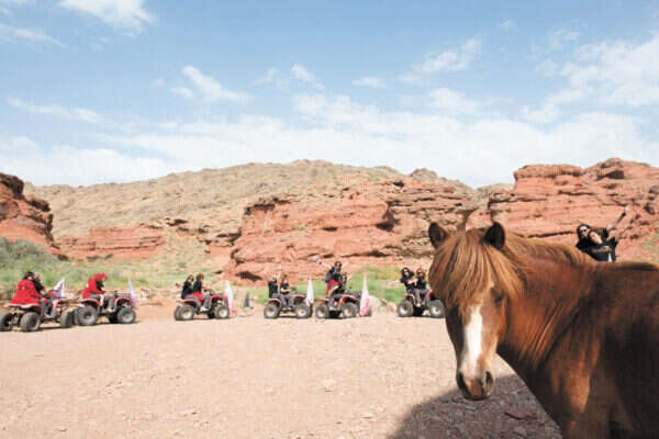 בכל מקום סוסים נמוכים ועיזים, מעלים ענני אבק. חלקם חסרי בעלים. באחת הפעמים אנחנו נתקלות בעדר של כ־150 סוסים. אחד מהם הוא בוודאי צאצא של הסוס האגדי שעליו רכב ג'ינגס חאן.