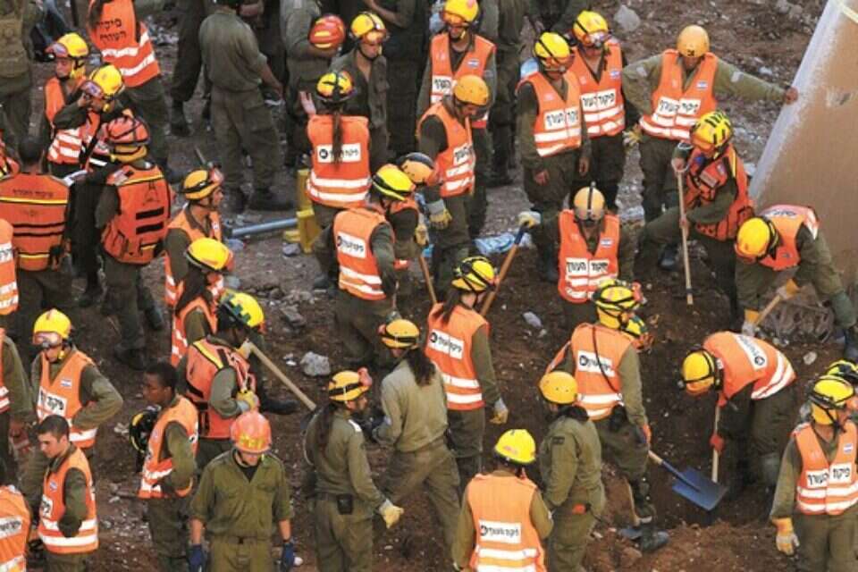 היעדר הדין - הוא הדין. לוחמי פיקוד העורף באתר קריסת החניון ברמת החייל // צילום: אי.אף.פי // היעדר הדין - הוא הדין. לוחמי פיקוד העורף באתר קריסת החניון ברמת החייל // צילום: אי.אף.פי