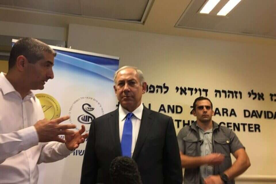 רה"מ שוחח באריכות עם המשפחה ועם הסגל הרפואי, ודרש בשלומו של פרס. "אני חושב שאני מדבר בשם כל עם ישראל, גם בשם רבים מחוץ לישראל, שמרגישים הערב הקלה מסוימת, ובעזרת השם מחר ואפילו הלילה יהיה יותר טוב", אמר נתניהו. "אני חושב שיש פה צוות יוצא מן הכלל, רופאים, רופאות, אחים ואחיות, צוות יוצא מהכלל שמטפל באדם יוצא מהכלל", לדבריו. עוד הוסיף ראש הממשלה כי, "כמובן, זה מוקדם מדי לומר זאת, ואנחנו נמשיך כולנו לקוות ולהתפלל, ולסמוך עליכם", אמר.