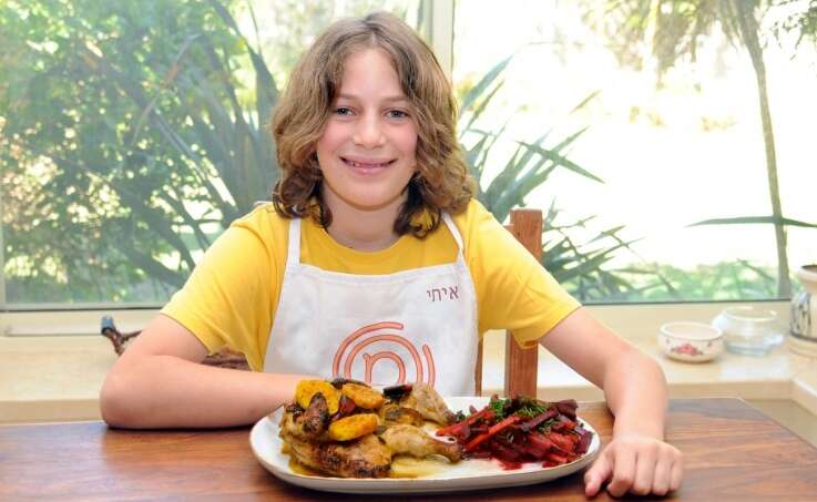 זה לא קל, לעמוד מול אייל שני או יונתן רושפלד ולהסביר מה מונח על הצלחת שהכנת. לא לגמגם, לא להגיד יותר מדי וגם לא לשתוק כמו בורי אפוי. זה לא קל, להסתכל בהם נועצים מזלג בערימת הסלט או הפירה, מגישים אל פיהם ומהנהנים זה אל זה בדממה. מבוגרים רבים, בשתי העונות של "מאסטר שף", הביאו אוכל, דמעות ורחשי לב אל השופטים הקשוחים. נסו לדמיין כמה אומץ צריך כדי לעשות את זה כשאתה רק בן 10, מקסימום 14. בעונה החדשה של התוכנית, ששידורה יתחיל מחרתיים ב"קשת", יתמודדו 16 ילדים מוכשרים, שהמטבח עבורם הוא מקום של השראה. ביום-יום הם ילדים רגילים. הם שרים, מנגנים, מגדלים בעלי חיים, משחקים כדורגל, גולשים קצת ומכינים שיעורי בית. אך כשמגיעים זמני הארוחות הם נכנסים אל המטבח ומבשלים עבור שאר בני המשפחה. יש להם חלומות על כוכבי מישלן, והם רוצים להאכיל שועי עולם. מיום ראשון הקרוב, במקום לקבל מחמאות מסבתא חנה או מדוד יעקב, הם יבשלו עבור חיים כהן, אייל שני, מיכל אנסקי ויונתן רושפלד, וגם המשימות שיטילו עליהם לא יעשו חסד עם גילם הצעיר. הם יגיעו מכל רחבי הארץ כדי לקצץ, להקפיץ, לאדות, לטגן ולאפות את המנות שלמדו לבשל בבית, עם ההורים או עם בני משפחה אחרים. בתוכנית לא יהיו הדחות, והילדים ימשיכו ללמוד כל הדרך אל הגמר. כולם יקבלו אות השתתפות, והשף המצטיין יקבל מלגה ללימודי בישול מתקדמים. הילדים ישתמשו בסכיני פלסטיק קלים ומיוחדים, המותאמים למידות ידיהם, ויבשלו על כיריים אינדוקטיביות, כדי לשמור על בטיחותם. לכבוד יום העצמאות הקרב ביקשנו משישה מהמתמודדים ב"מאסטר שף ילדים" להרכיב מנות מנצחות עבור קוראי "ישראל היום". להלן טעימה ראשונה ממטעמי הדור הבא של הבשלנים הישראלים. איתי כהן, בן 10.5 מרחובות עופיונים צלויים בפירות ארץ ישראל וסלט סלק איתי לומד בבית ספר פתוח, ומדעים וספורט הם המקצועות החביבים עליו. הוא משחק בליגת כדור-יד מקצועית מול גדולים ממנו וחובב גלישת גלים. איתי מתמחה בבשר ובדגים ובעיקר אוהב להכין סושי. הוא מעריץ את השף הסטון בלומנטל והיה רוצה לאכול איתו ארוחת ערב. לעופיונים: • 2 עופיונים נקיים ופתוחים מהגב (בצורת ספר) • 2 יחידות סברס • 1 ק"ג תפוזים • 2 כפיות סוכר חום • 1 פלפל צ'ילי • 8-5 עלי מרווה לסלט: • 2 גזרים חתוכים למקלונים • 1 ראש סלק חי חתוך למקלונים • כף עירית קצוצה • 1/4 כוס שמן • 1.5 כפות חומץ בלסמי • מיץ מחצי לימון • 1.5 כפות דבש • 1/2 כפית חרדל דיז'ון • מלח, פלפל מכינים משרה: סוחטים את התפוזים, מוסיפים את הסוכר, הפלפל ועלי המרווה, ומערבבים בקערה. משטחים קלות את העופיונים בעזרת פטיש שניצלים ומוסיפים לקערת המשרה. מניחים במשרה למשך הלילה. למחרת מחממים תנור ל-200 מעלות, מניחים את העופיונים בתבנית ושופכים עליהם את כל נוזלי הרוטב. מכניסים לתנור ל-45 דקות. חמש דקות לפני תום הבישול חותכים פרוסות סברס, מניחים על העופיונים וצולים בגריל (אפשר גם לקרמל את פרוסות הסברס: מניחים אותן טריות על העופיונים המוכנים, מפזרים מעל סוכר ומקרמלים בברנר ידני כחצי דקה). כשהעופיונים בתנור מכינים את הסלט: מערבבים את כל המרכיבים יחד, ומשהים למשך שעה כדי שהטעמים ייספגו. ליהיא נעים, בת 11 מתל אביב צלעות טלה עם עשבי תיבול וירקות קלויים ליהיא שרה במסגרת חוג של הקונסרבטוריון וכמובן, אוהבת מאוד לבשל. היא רוצה מאוד להכין ארוחת ערב לזמרת אדל והיתה מכינה לה את האוכל שגדלה עליו - קוסקוס עם ירקות וקציצות. היא רוצה להיות זמרת ולשלב קריירה בתחום הבישול. החומרים: • 4 צלעות טלה מובחרות • 3 פלפלים: צהוב, ירוק ואדום • חציל בלאדי בינוני • 2 שיני שום • חומץ בלסמי מובחר • חופן תערובת עשבי תיבול (תימין, רוזמרין, כוסברה) • לימון סחוט • כף טחינה גולמית • שמן זית • מלח גס, פלפל • עגבניות שרי קולים את הפלפלים ואת החציל ומניחים לקירור. מקלפים את הפלפלים וחותכים לקוביות. מגרדים את שיני השום אל קוביות הפלפלים. מוסיפים חומץ בלסמי, שמן זית, מלח ופלפל. את החציל פורסים לחצי, מוציאים את הבשר בעזרת כף ומניח