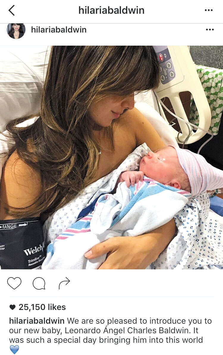אלק בולדווין (58) חגג השבוע עם אשתו הילריה (32) את הולדת הילד השלישי שלהם, לאונרדו אנג'ל צ'רלס. השניים נשואים זה ארבע שנים, ולשחקן יש בת אחת, איירלנד (20), מנישואיו לקים בייסינגר.