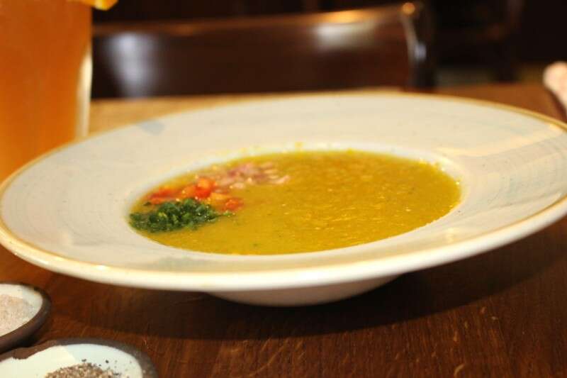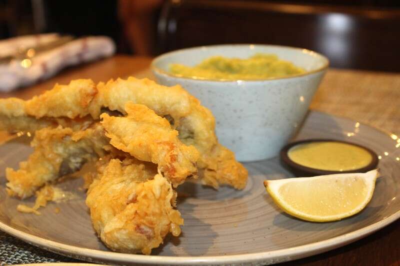 הסלט היה מעולה עם מגוון ענק שסבל רק מבעיה אחת, של טעם חזק של שמן שומשום. הבשר היה נהדר, הירקות היו טריים. כיף היה להיתקל באספרגוס טרי. הפיש אנד צ'יפס היה נפלא. דגי בורי, עם שכבת עור דקה ששמרה על עסיסיותם, בציפוי פנקו יפני, בליווי איולי כוסברה משגע ובגולת הכותרת פירה אפונה.
