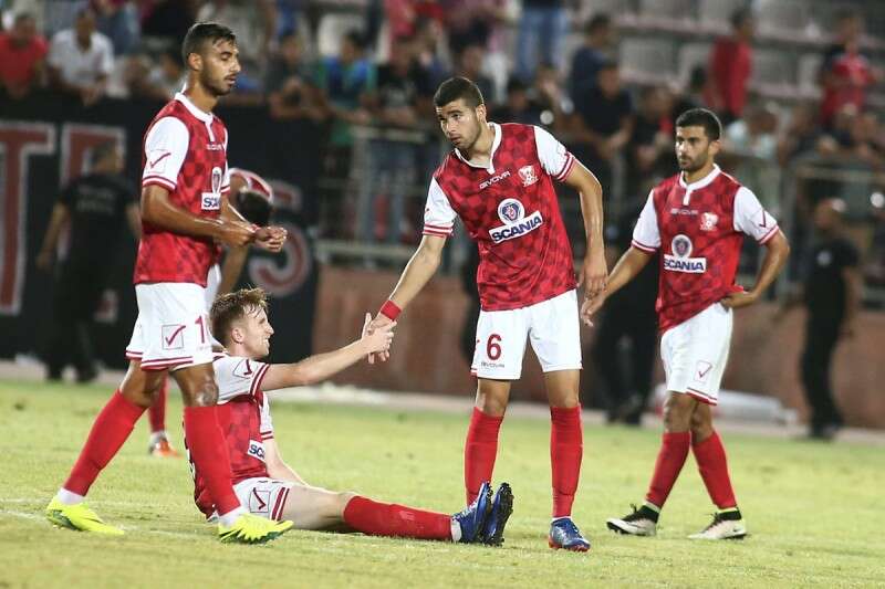 שחקני בני סכנין אמש. בהנהלה חשו שהם היו כבויים // צילום: אלן שיבר