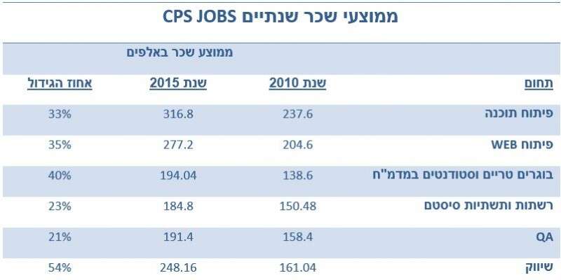 חשבתם שמשתלם להשתייך למגזר ההייטק בישראל? יש סיכוי טוב שאתם לא מבינים עד כמה. סקר חדש שערכה חברת ההשמה לתחום הייטק CPS JOBS מראה עלייה תלולה בחמשת השנים האחרונות, לא רק בדרישה לעובדים בתחום תעשיית ההיי טק אלא גם בשכר הממוצע לעובד.