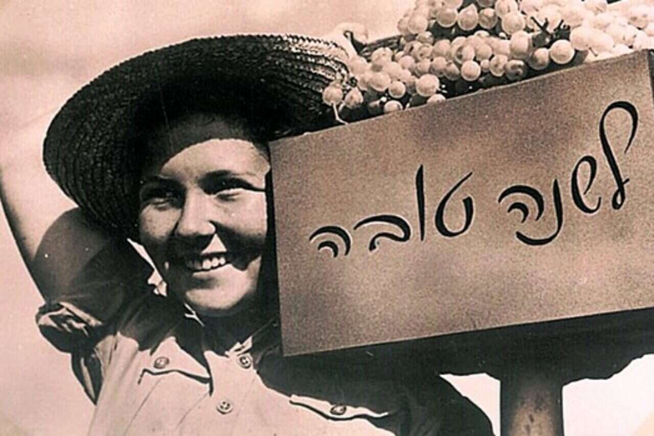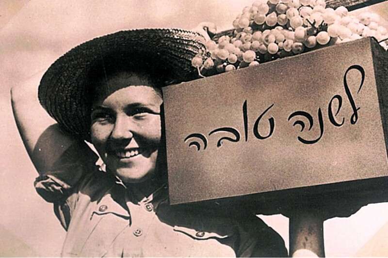 "פרי גפן אדרת ונערה לתפארת" - זו הכותרת של גלוית שנה טובה משנת 1951, שצילם זולטן קלוגר. בתמונה נראית נערה צעירה נושאת ארגז ענבים ומחייכת חיוך רחב. המסר החלוצי חד וברור. גלויה נוספת בעלת אותו מסר, שגם אותה צילם קלוגר, היא "חלוצה בשדה שיבולים" משנת 1946. "הגלויה צולמה כמובן בשחור־לבן", נזכר מיכה דורפצאון, "ומי שצבעה בכחול, ירוק, אדום וצהוב את כל העותקים, בעבודת יד, היתה רוזה מאירצ'ק, אמה של השחקנית חנה מרון. היינו מביאים אליה ארגזים עם גלויות, והיא היתה צובעת אותן אחת אחת. אני זוכר במיוחד צביעה של גלויה של עולה חדשה מתימן, בשנות ה־50, כשהיא מדליקה נרות שבת". (צילומים: זולטן קלוגר)