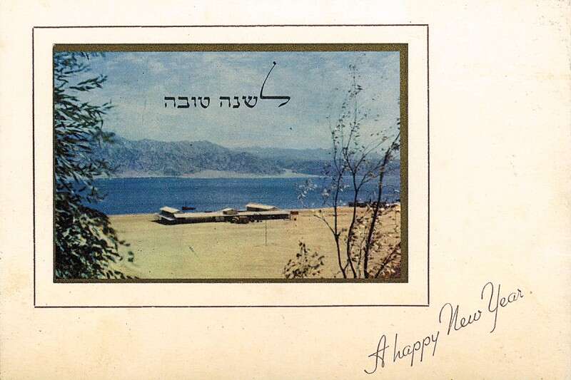 העיר אילת, "אום רש רש" בשמה הערבי או "עציון גבר" בשמה התנ"כי, נכבשה במלחמת העצמאות והוקמה כיישוב בשנת 1952. גלוית שנה טובה שעליה צילום הימים הראשונים באילת הופצה כבר באותה שנה.