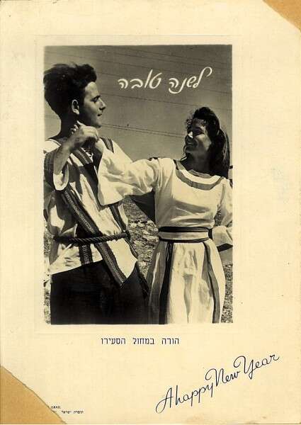צמד רקדני ההורה שבתמונה צולמו לגלוית שנה טובה בשנת 1954, כחלק מתיעוד התרבות הישראלית הצעירה, חיזוק "קיבוץ הגלויות" וביטוי לריקוד שסחף את כל תושבי המדינה הצעירה, עולים חדשים לצד תושבים ותיקים. ב־1958 הופצה גלויה נוספת, שצילם ירון מירלין, ובה נראית קבוצת רקדנים בקיבוץ דן, והיא היתה אחת הראשונות שצולמו בצבע. הצבעים שבתמונה חוזקו בבית הדפוס, כדי להקנות לגלויה כוח ושמחה. (צילום: ירון מירלין)