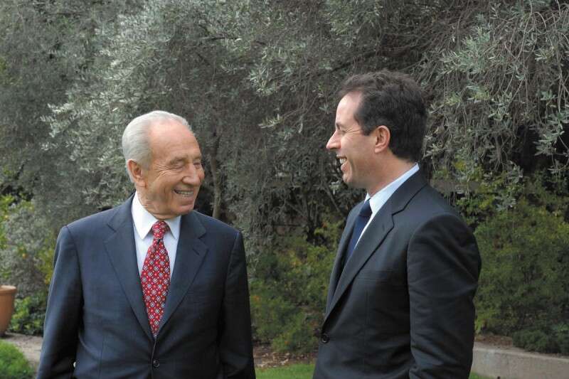 נשיא שזכה להערכה ולאהדה חובקת עולם. פרס עם הקומיקאי ג'רי סיינפלד, בעת ביקורו בירושלים, נובמבר 2007