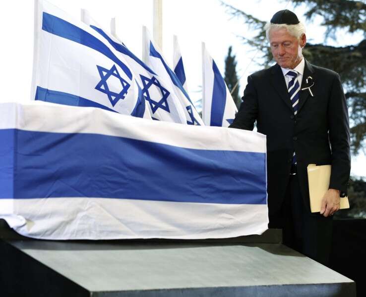 נשיא ארה"ב לשעבר, ביל קלינטון, נשא הספד מרגש ואמר: "שמעון היה יכול לדמיין את כל אנשי העולם חיים יחד. הוא משאיר זיכרון מבורך ודוגמא למופת אחריו. מי שאהב אותו צריך לקבל על עצמו את החובה להמשיך את דרכו - ולדמיין".