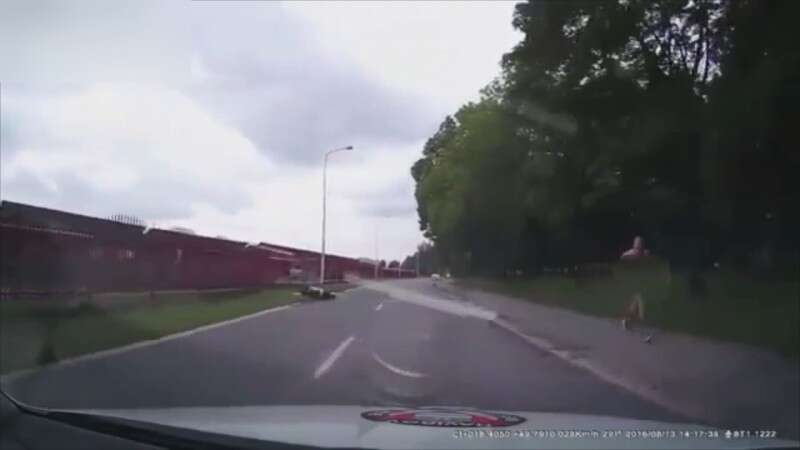 בזמן המרדף המשטרתי, הנודיסט התנגש בחלקו האחורי של רכב מסוג פורד פוקוס ונפל.