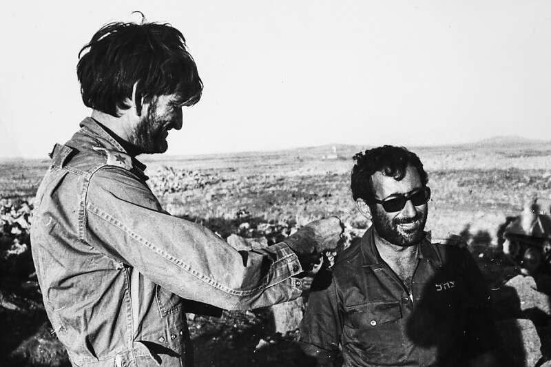 אריה מזרחי מקבל דרגות סא"ל מידי אביגדור (יאנוש) בן גל ז"ל, מח"ט 7 דאז // צילום: יהושע יוסף
